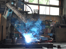 | ロボット溶接機による溶接 | 職人による手溶接 | 工場が広く、大型製品の加工を 得意としています |